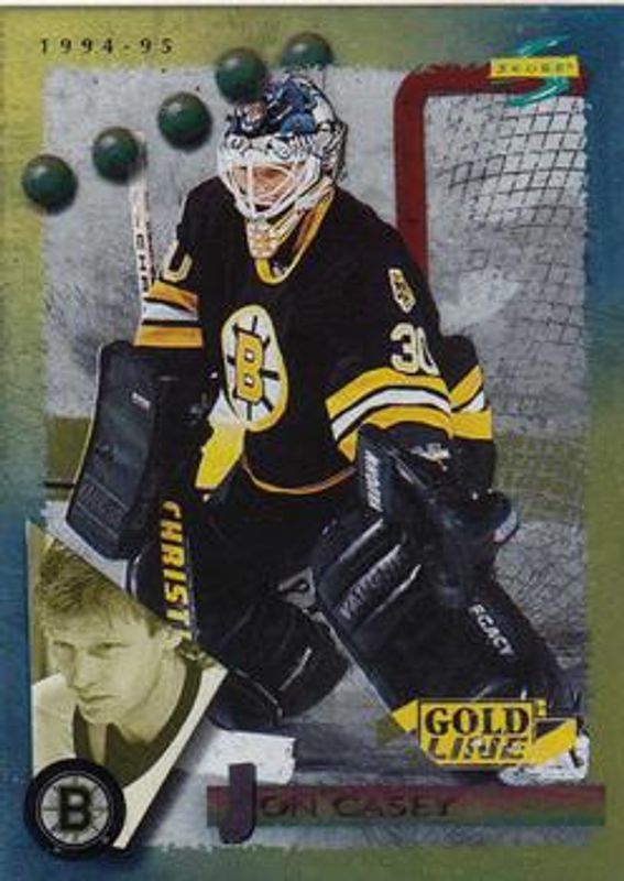 The Jon Casey 1994 Score #111 Gold Line card is 1 of 4 Jon Casey's card variations in the 1994 Score set being tracked by Sports Card Investor, including Base, Gold Line - Punched, and Platinum.
