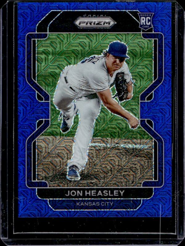 The Jon Heasley 2022 Prizm #167 Blue Mojo /199 Rookie card is 1 of 64 Jon Heasley's card variations in the 2022 Prizm set being tracked by Sports Card Investor, including Base, Blue, Blue Velocity, Carolina Blue, and Cosmic Haze.