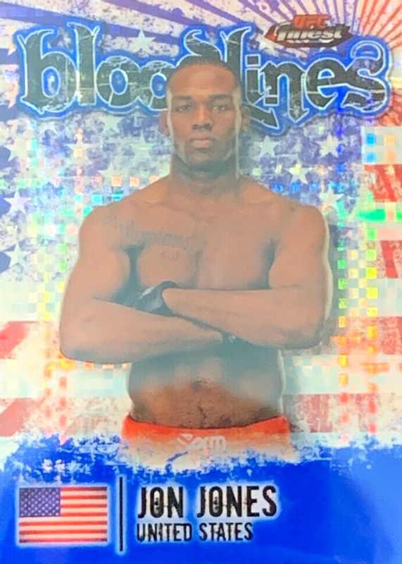 The Jon Jones 2012 Topps Finest UFC #BL-JJ Bloodlines - Blue X-Fractor /188 card in Raw condition has not changed in price in the last 30 days and was last sold for $85.00 .