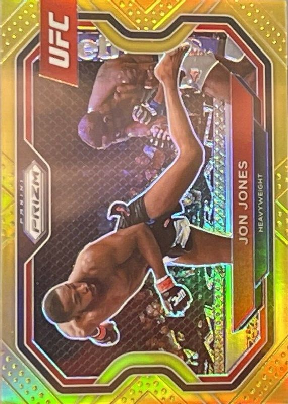 The Jon Jones 2021 Prizm UFC #101 Gold /10 card in Raw condition has not changed in price in the last 30 days and was last sold for $2,325.00 .