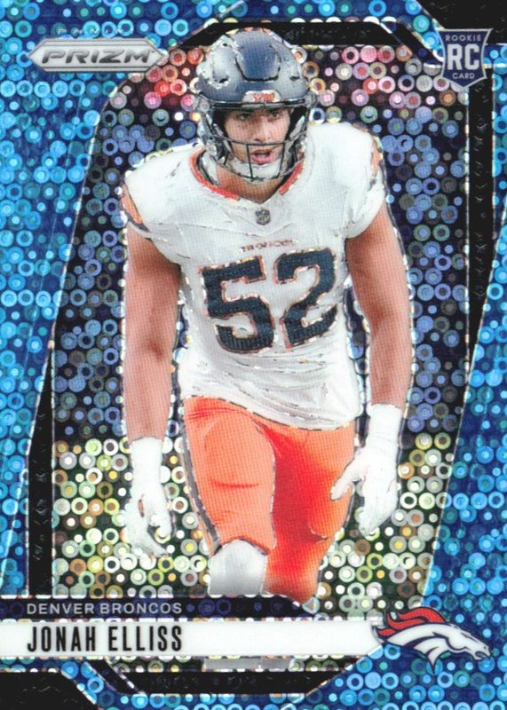 This card is 1 of 83 Jonah Elliss' card variations in the 2024 Prizm set being tracked by Sports Card Investor, including Base, Choice Blue Yellow Green, Choice Silver, Disco, and Green.