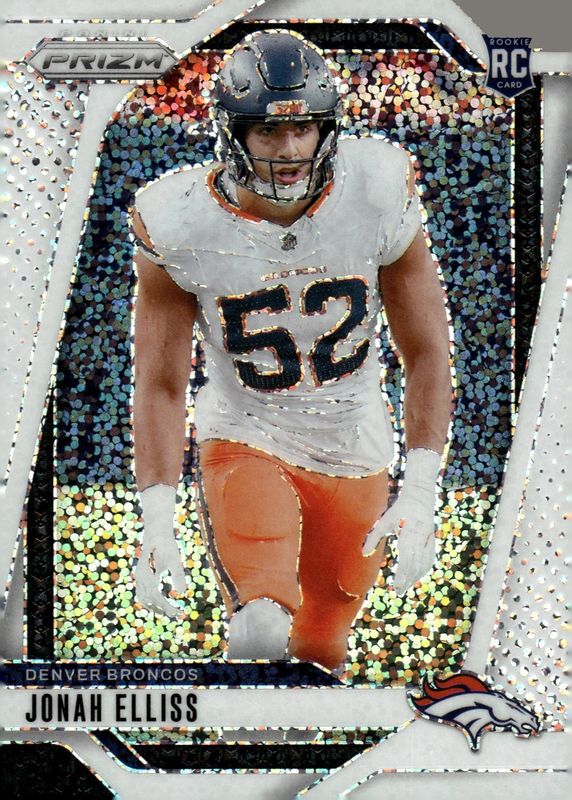This card is 1 of 83 Jonah Elliss' card variations in the 2024 Prizm set being tracked by Sports Card Investor, including Base, Choice Blue Yellow Green, Choice Silver, Disco, and Green.