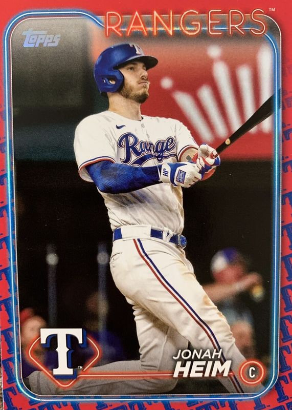 This card is 1 of 2 Jonah Heim's card variations in the 2024 Topps set being tracked by Sports Card Investor, including Golden Mirror Image Variation /(SSP).