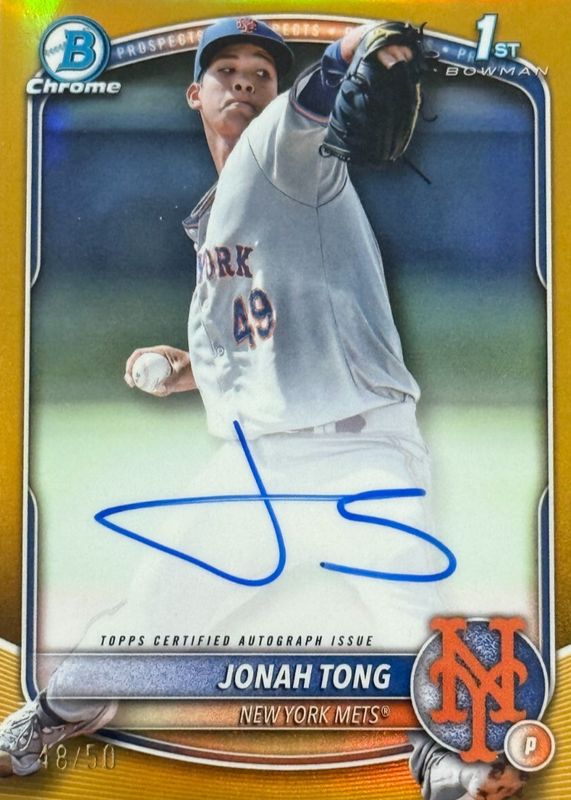 2025 BOWMAN CHROME JONAH TONG 1st AUTO TRUE GOLD REFRACTOR 50/50 METS