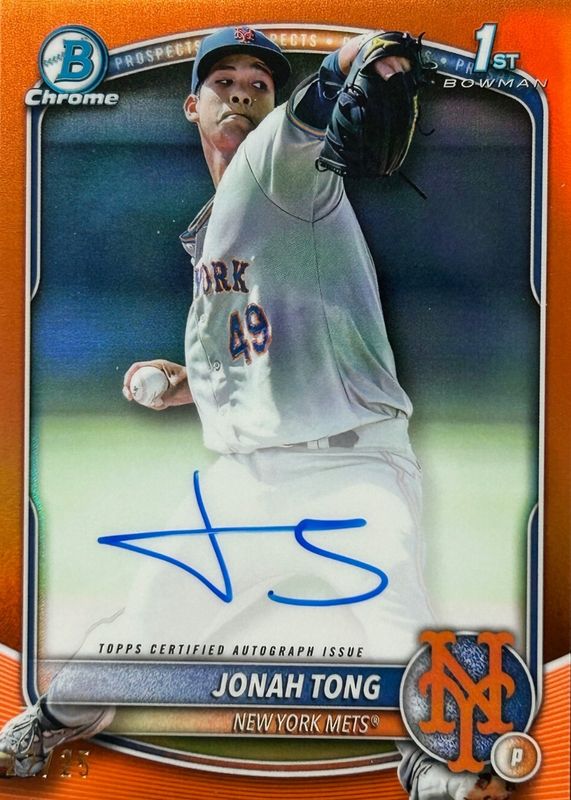 2025 Bowman Jonah Tong Chrome Auto Orange Refractor 1st Prospect /25 Mets