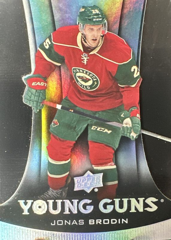 The Jonas Brodin 2013 Upper Deck #234 Young Guns - Acetate Rookie card in Raw condition has not changed in price in the last 30 days and was last sold for $41.00 .