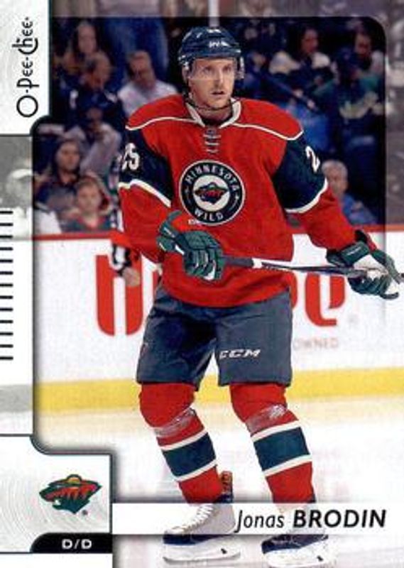 The Jonas Brodin 2017 O-Pee-Chee #291 Base card is 1 of 6 Jonas Brodin's card variations in the 2017 O-Pee-Chee set being tracked by Sports Card Investor, including Rainbow Foil, Red, Retro, Retro Blank Back, and Black Rainbow Foil /100.