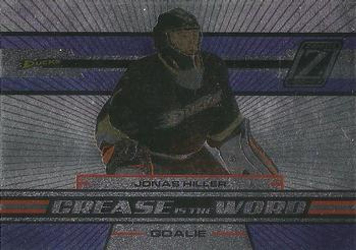 The Jonas Hiller 2010 Zenith #1 Crease is the Word card is 1 of 2 Jonas Hiller's card variations in the 2010 Zenith set being tracked by Sports Card Investor, including Yours Truly Autographs.