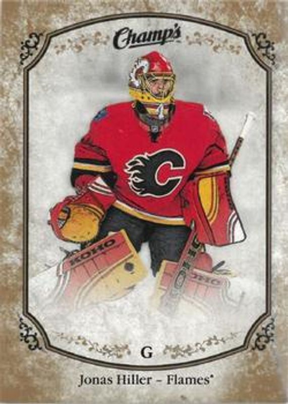 The Jonas Hiller 2015 Upper Deck Champ's #41 Gold Variant Back card is 1 of 4 Jonas Hiller's card variations in the 2015 Upper Deck Champ's set being tracked by Sports Card Investor, including Base, Gold, and Silver /25.