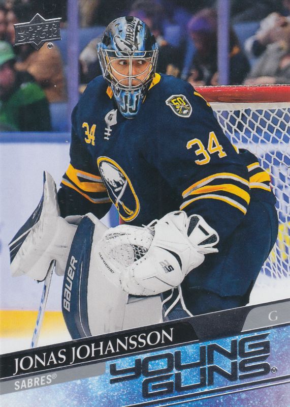 The Jonas Johansson 2020 Upper Deck #228 Young Guns Base Rookie card in Raw condition has moved up $0.30 (+25.2%) in the last 30 days and was last sold for $1.49 .