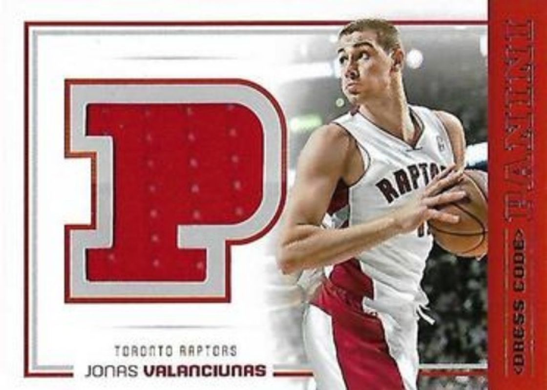 The Jonas Valanciunas 2012 Panini #2 Dress Code Rookie card is 1 of 9 Jonas Valanciunas' card variations in the 2012 Panini set being tracked by Sports Card Investor, including Base, Gold Knight, Silver Knight, Black Knight /10, and All-Panini.