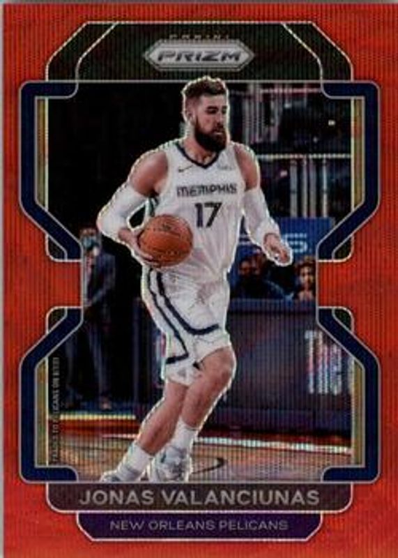The Jonas Valanciunas 2021 Prizm #62 Ruby Wave card is 1 of 63 Jonas Valanciunas' card variations in the 2021 Prizm set being tracked by Sports Card Investor, including Base, Blue NBA 75th Anniversary, Blue Wave, Choice Blue Yellow Green, and Factory Set Blue Hyper.