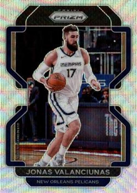 The Jonas Valanciunas 2021 Prizm #62 Silver Wave card is 1 of 63 Jonas Valanciunas' card variations in the 2021 Prizm set being tracked by Sports Card Investor, including Base, Blue NBA 75th Anniversary, Blue Wave, Choice Blue Yellow Green, and Factory Set Blue Hyper.