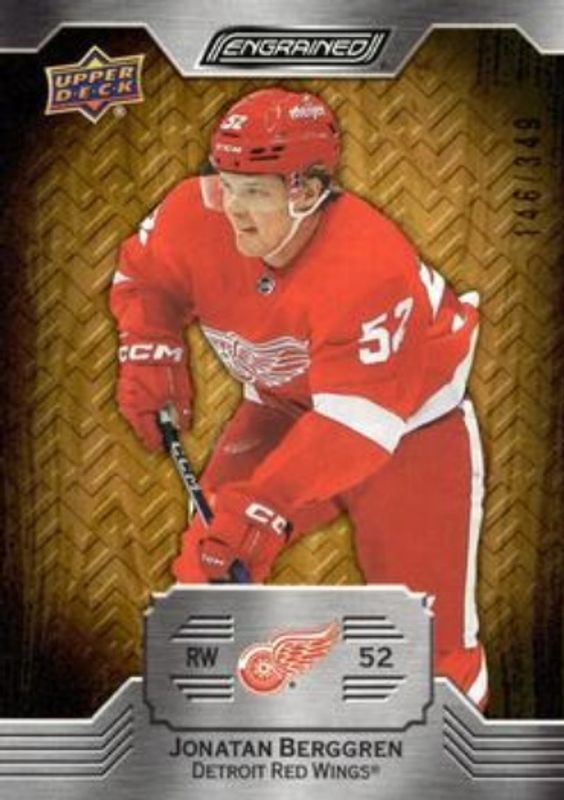 The Jonatan Berggren 2023 Upper Deck Engrained #25 Oak /399 card is 1 of 15 Jonatan Berggren's card variations in the 2023 Upper Deck Engrained set being tracked by Sports Card Investor, including #172 Oak /399, #25 Autographs White Birch /50, #25 Ebony /49, #172 Ebony /49, and #172 Memorabilia Auto Mahogany /25.