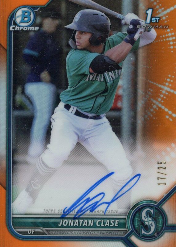 2022 1st Bowman Chrome Jonatan Clase ORANGE Refractor Auto #d 17/25 Mariners