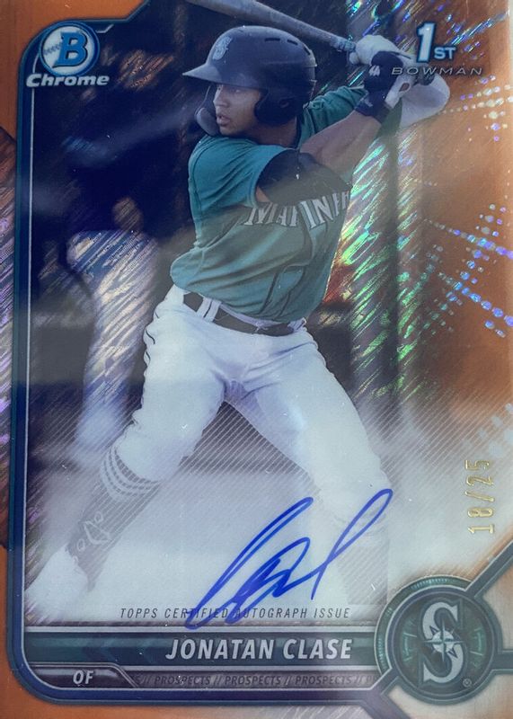 Best Prices Available For Sale of Jonatan Clase 2022 Bowman #CPA-JCL Chrome Prospect Auto - Orange Shimmer Refractor /25 (1st)