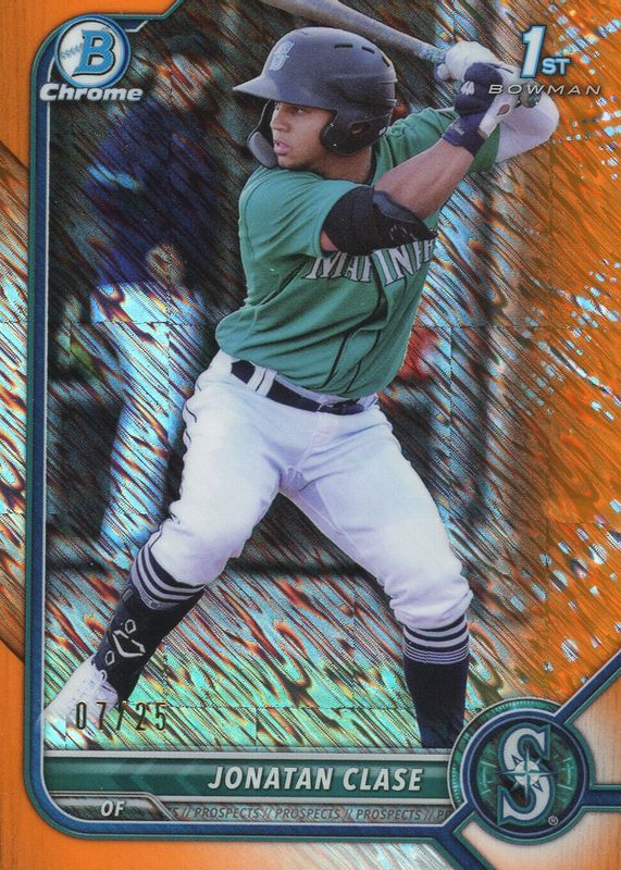 2022 Bowman Chrome Jonatan Clase Orange Shimmer Refractor 07/25 Mariners