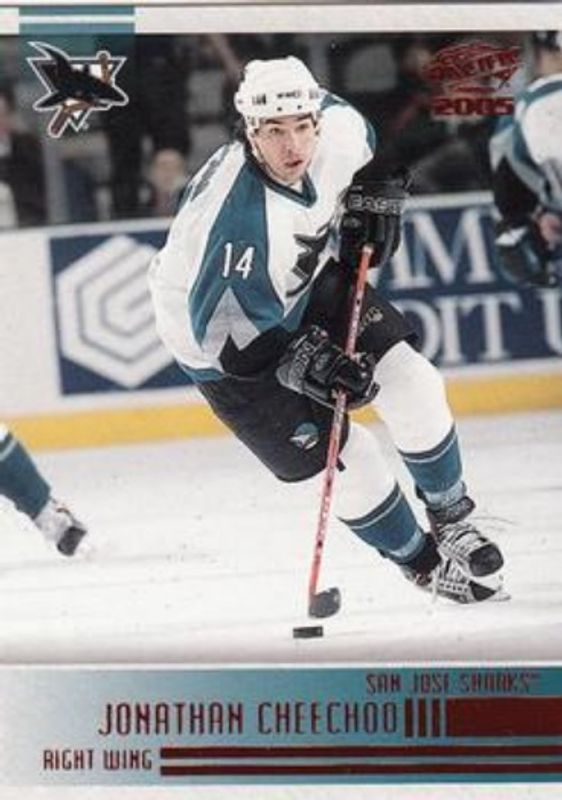 The Jonathan Cheechoo 2004 Pacific #226 Red card is 1 of 4 Jonathan Cheechoo's card variations in the 2004 Pacific set being tracked by Sports Card Investor, including Base, Blue /250, and Gold Crown Die-Cut.
