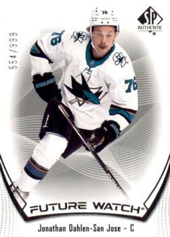 The Jonathan Dahlen 2021 SP Authentic #137 Future Watch Auto /999 Rookie card is 1 of 15 Jonathan Dahlen's card variations in the 2021 SP Authentic set being tracked by Sports Card Investor, including Black Autographs, Limited Red, Limited Gold /99, Limited Black /1, and Future Watch Acetate.