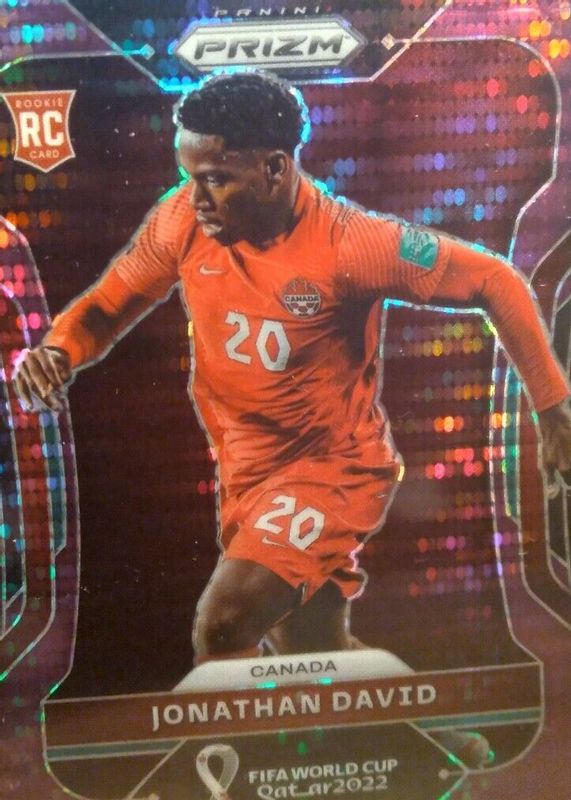 This card is 1 of 38 Jonathan David's card variations in the 2022 Prizm World Cup set being tracked by Sports Card Investor, including Base, Breakaway, Choice Red, Green Ice, and Green Wave.