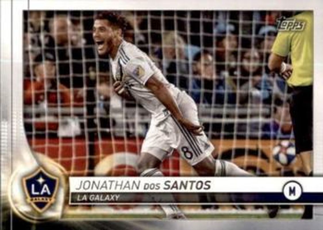 The Jonathan Dos Santos 2020 Topps MLS #100b Base card is 1 of 20 Jonathan Dos Santos' card variations in the 2020 Topps MLS set being tracked by Sports Card Investor, including Base, Blue /99, Gold /50, Orange /25, and Red /10.