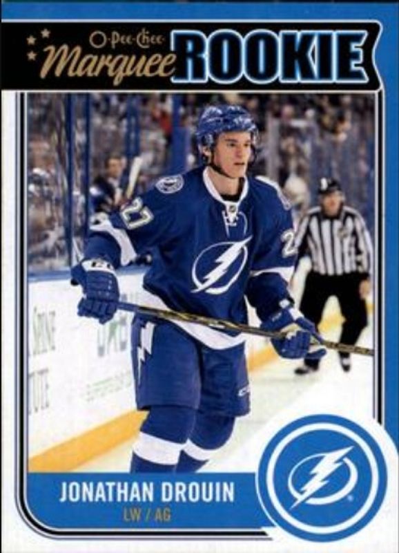 The Jonathan Drouin 2014 Upper Deck #U27 2014 O-Pee-Chee Update Rookie card is 1 of 21 Jonathan Drouin's card variations in the 2014 Upper Deck set being tracked by Sports Card Investor, including Young Guns Base, Young Guns Canvas, Young Guns - Acetate, Young Guns - UD Exclusives /100, and Young Guns - UD High Gloss /10.