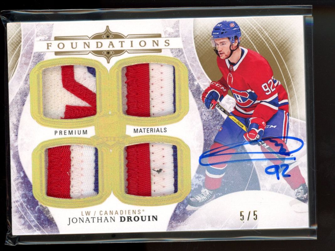 Jonathan Drouin 2017 Upper Deck The Cup #F-JD Cup Foundations Patch Autographs /5 RAW Price Guide