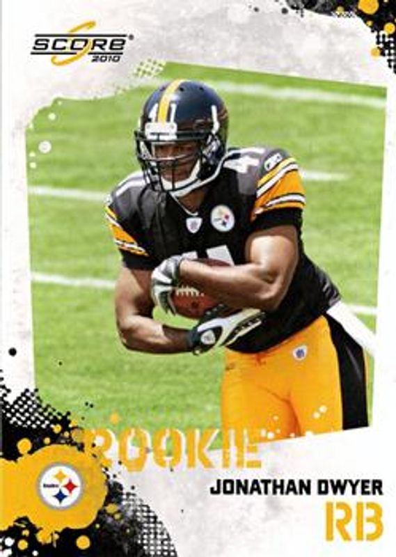 The Jonathan Dwyer 2010 Score #363 Glossy Rookie card is 1 of 8 Jonathan Dwyer's card variations in the 2010 Score set being tracked by Sports Card Investor, including Base, Scorecard /499, Gold Zone /299, Red Zone /100, and Artist's Proof /32.