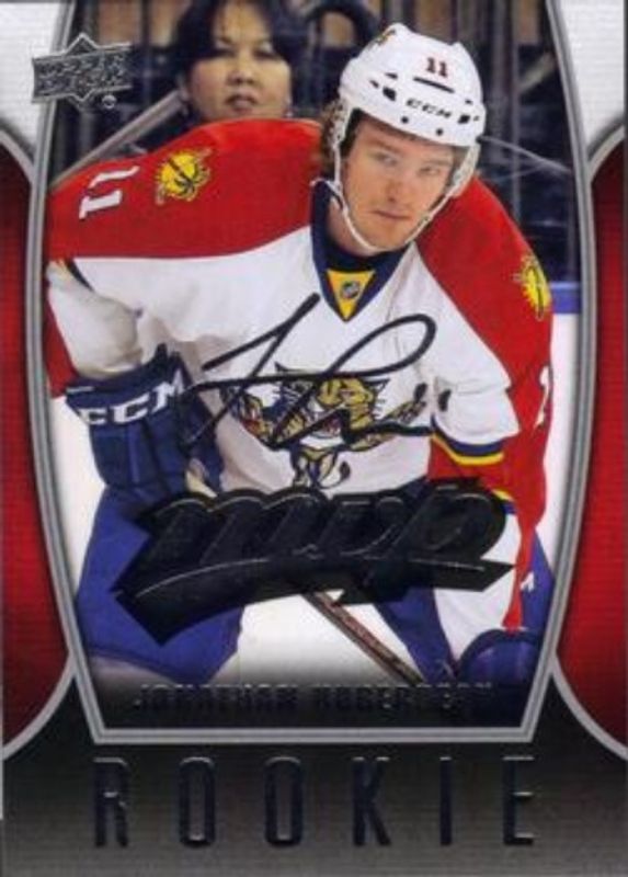 The Jonathan Huberdeau 2013 Upper Deck #57 2013 Upper Deck MVP Rookie card is 1 of 21 Jonathan Huberdeau's card variations in the 2013 Upper Deck set being tracked by Sports Card Investor, including Young Guns Base, Young Guns Canvas, Young Guns - Acetate, Young Guns - Jumbo, and Young Guns - UD Exclusives /100.