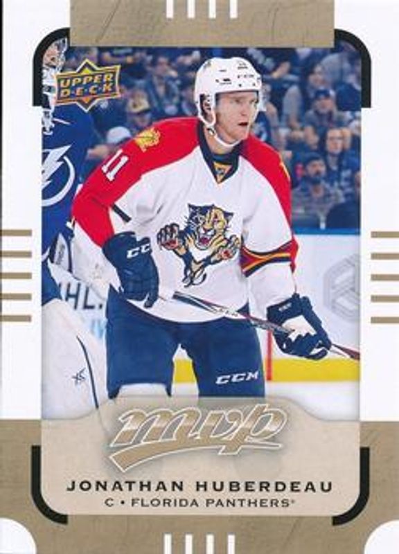 The Jonathan Huberdeau 2015 Upper Deck MVP #83 Base card is 1 of 10 Jonathan Huberdeau's card variations in the 2015 Upper Deck MVP set being tracked by Sports Card Investor, including Colours & Contours, Green (e Pack), Silver Script, Gold Script /100, and Super Script /25.