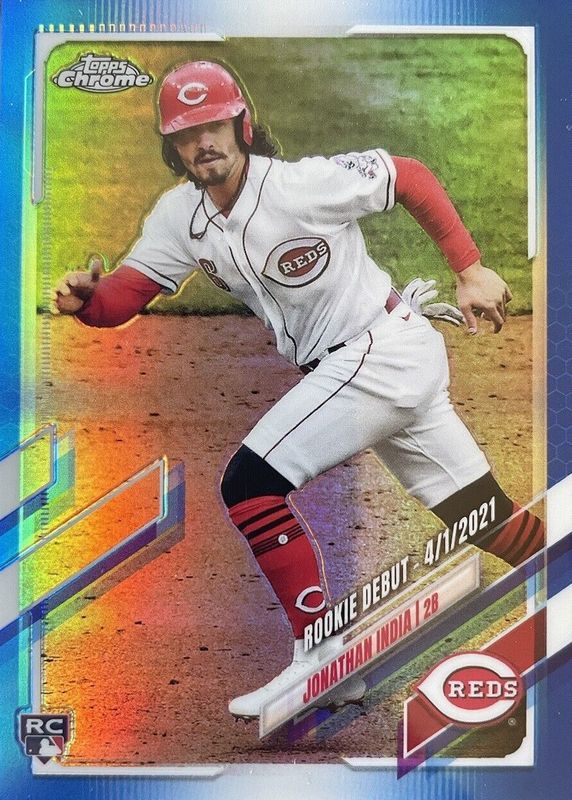 2021 Topps Chrome Update Jonathan India Rookie Debut Blue Refractor /199 USC96