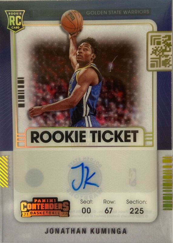 This card is 1 of 5 Jonathan Kuminga's card variations in the 2021 Contenders set being tracked by Sports Card Investor, including Draft Class Contenders, Lottery Ticket, Rookie of the Year Contenders, and Permit to Dominate /(SSP).