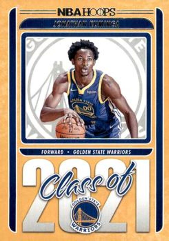 The Jonathan Kuminga 2021 Hoops #4 Class of 2021 Rookie card is 1 of 46 Jonathan Kuminga's card variations in the 2021 Hoops set being tracked by Sports Card Investor, including Base, Anniversary Edition, Blue, Green Ice, and Hyper Blue.