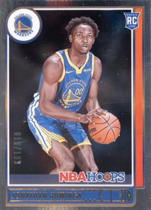 The Jonathan Kuminga 2021 Hoops #219 Premium Box Set /199 Rookie card is 1 of 46 Jonathan Kuminga's card variations in the 2021 Hoops set being tracked by Sports Card Investor, including Base, Anniversary Edition, Blue, Green Ice, and Hyper Blue.