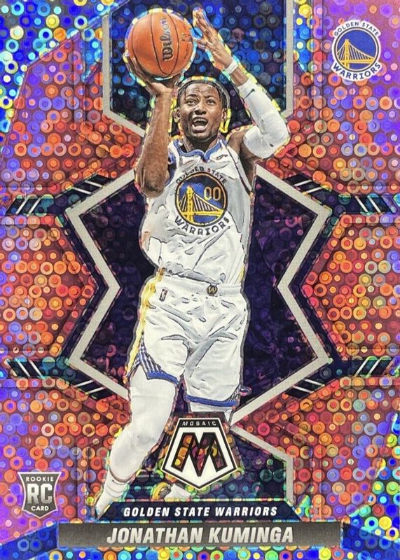 This card is 1 of 74 Jonathan Kuminga's card variations in the 2021 Mosaic set being tracked by Sports Card Investor, including Base, NBA Debut, Anniversary Edition, Choice Red & Green, and Fast Break.