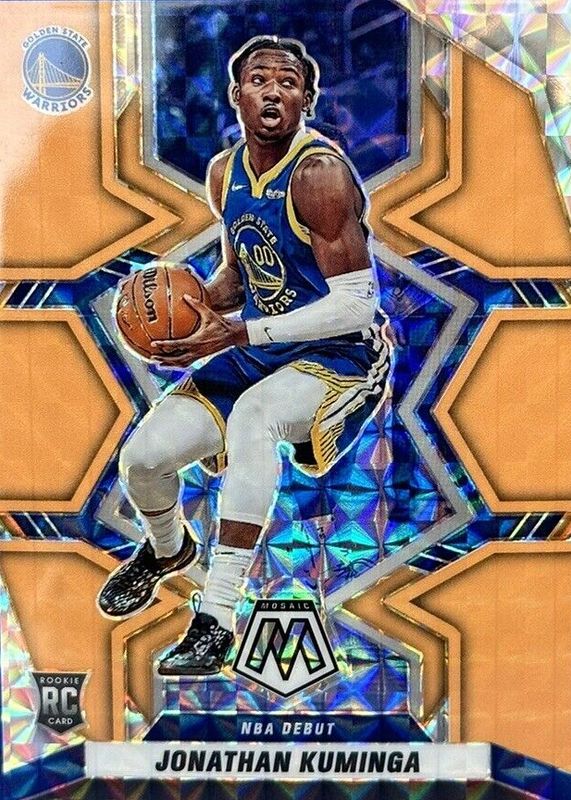 The Jonathan Kuminga 2021 Mosaic #268 NBA Debut - Orange Fluorescent /25 Rookie card in Raw condition has not changed in price in the last 30 days and was last sold for $86.53 .