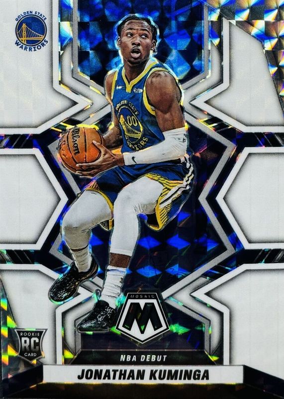 This card is 1 of 74 Jonathan Kuminga's card variations in the 2021 Mosaic set being tracked by Sports Card Investor, including Base, NBA Debut, Anniversary Edition, Choice Red & Green, and Fast Break.