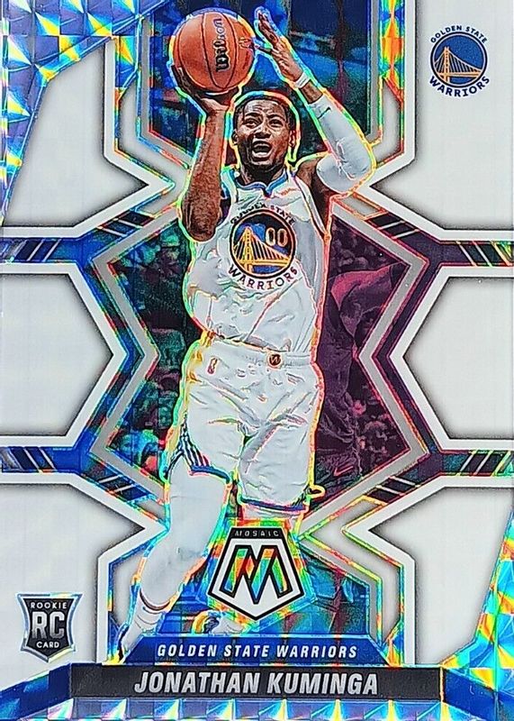 This card is 1 of 74 Jonathan Kuminga's card variations in the 2021 Mosaic set being tracked by Sports Card Investor, including Base, NBA Debut, Anniversary Edition, Choice Red & Green, and Fast Break.