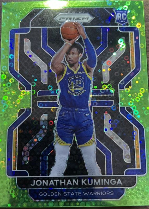 The Jonathan Kuminga 2021 Prizm #307 Fast Break Neon Green /5 Rookie card in Raw condition has not changed in price in the last 30 days and was last sold for $725.00 .