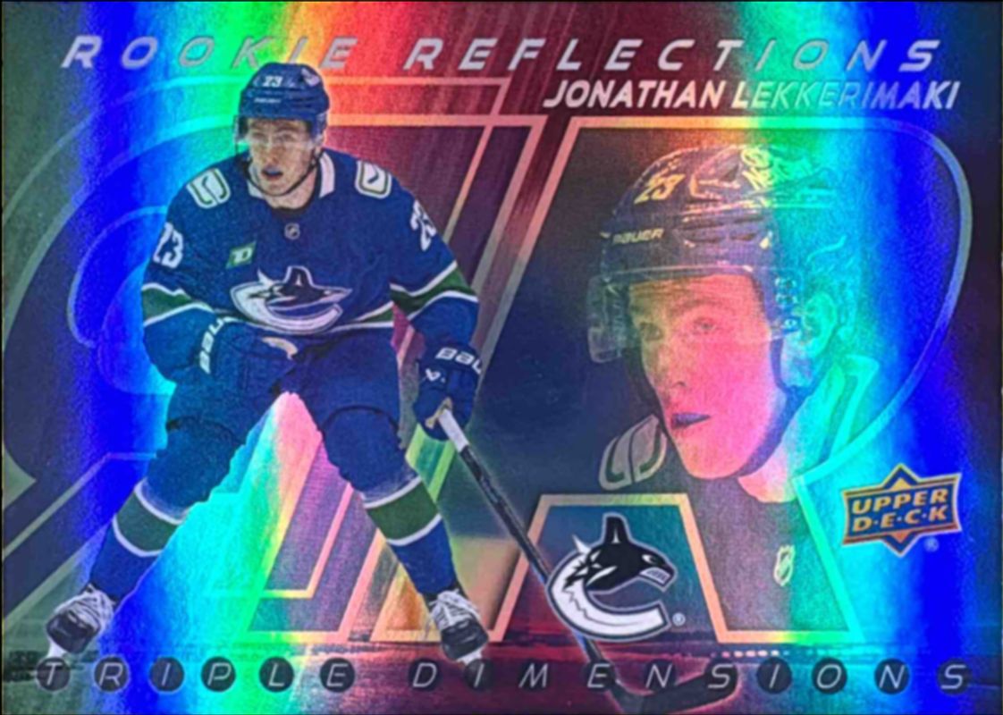The Jonathan Lekkerimaki 2024 Upper Deck Extended Series #RR-18 Rookie Reflections card is 1 of 69 Jonathan Lekkerimaki's card variations in the 2024 Upper Deck Extended Series set being tracked by Sports Card Investor, including #745 Base, #706 Base, #706 Young Guns Base, #745 Clear Cut, and #706 Clear Cut.