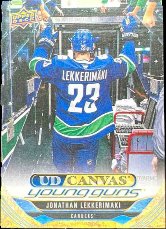 The Jonathan Lekkerimaki 2024 Upper Deck Extended Series #C364 UD Canvas Rookie card is 1 of 69 Jonathan Lekkerimaki's card variations in the 2024 Upper Deck Extended Series set being tracked by Sports Card Investor, including #745 Base, #706 Base, #706 Young Guns Base, #745 Clear Cut, and #706 Clear Cut.