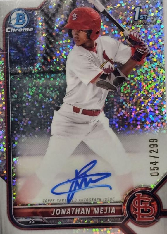 JONATHAN MEJIA 2022 BOWMAN CHROME 1ST SPECKLE REFRACTOR AUTO /299 Q1162 SB3