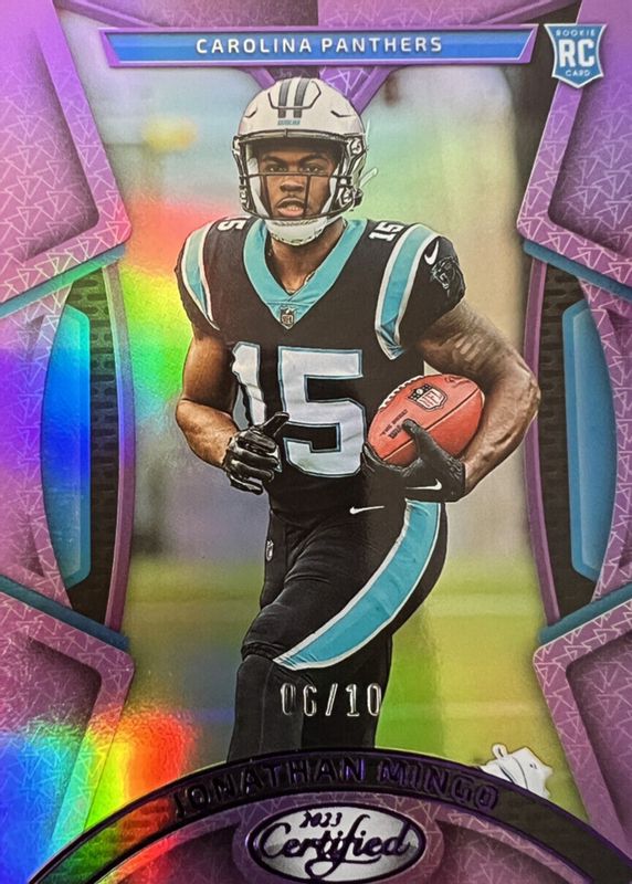 2023 Panini Certified Football Jonathan Mingo Purple Rookie 🔥# /10 RC Panthers