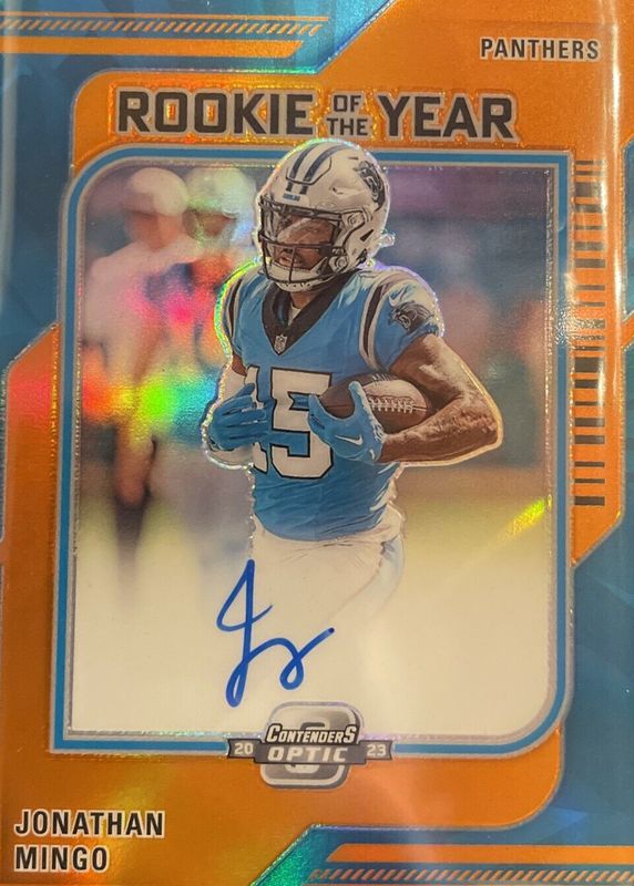 Best Prices Available For Sale of Jonathan Mingo 2023 Contenders Optic #ROY-JM Rookie of the Year Contenders Autographs - Orange /50