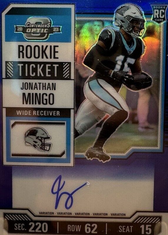 Best Prices Available For Sale of Jonathan Mingo 2023 Contenders Optic #119 Rookie Ticket Auto Variation - Blue /50