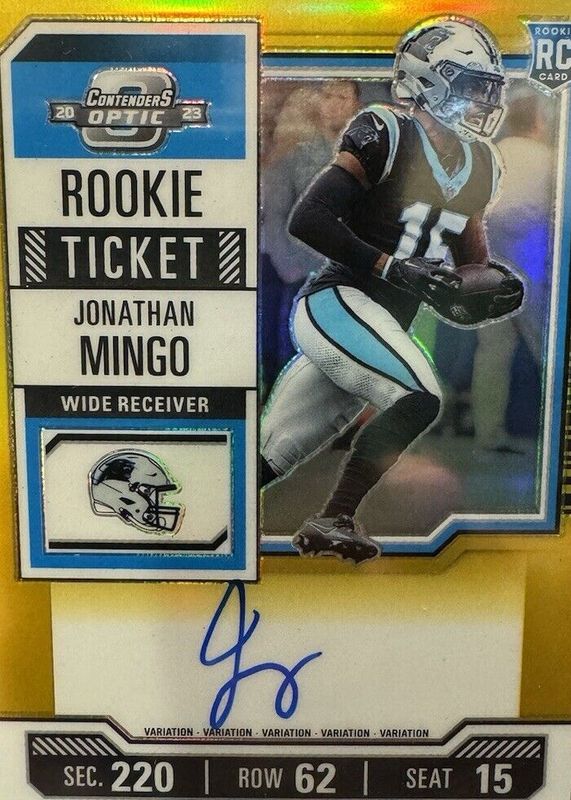 2023 Jonathan Mingo Contenders Optic RC Ticket Variation Auto Gold 3/10 Panthers