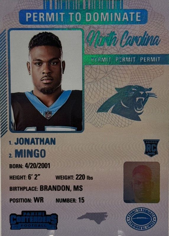 2023 Panini Contenders Permit to Dominate #20 Jonathan Mingo RC ROOKIE PANTHERS