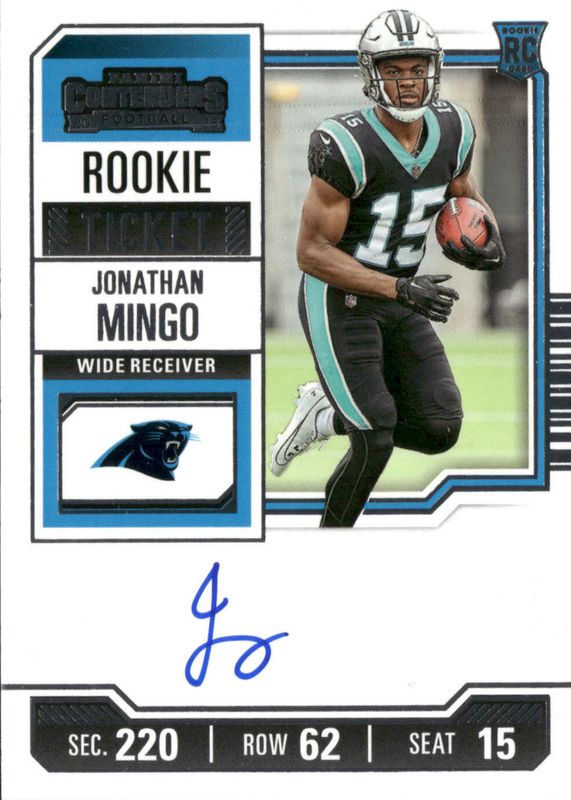 Jonathan Mingo Auto 2023 Panini Contenders Rookie Ticket RC Carolina, Dallas
