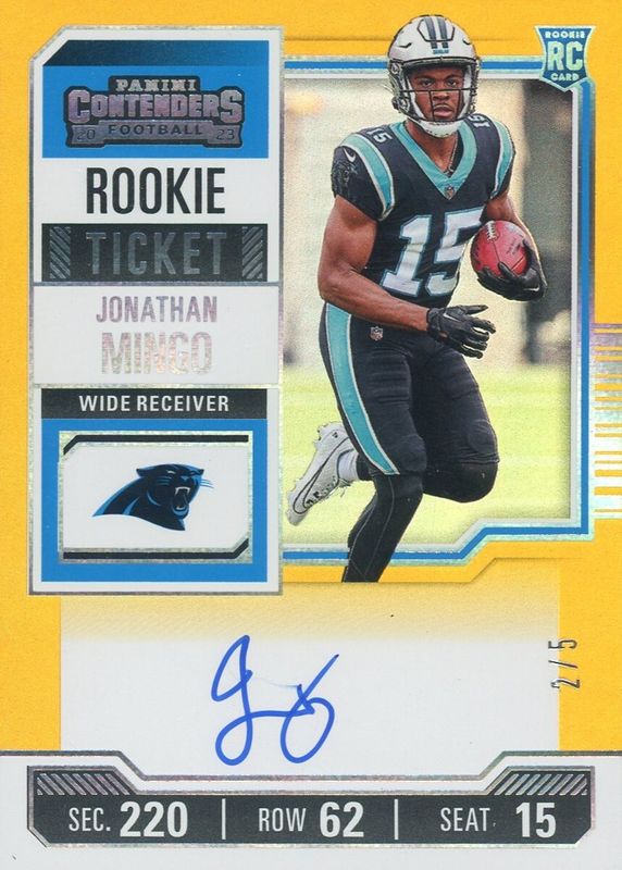 Jonathan Mingo 2023 Contenders #119 Rookie Ticket Auto - Goal Line Ticket /5 RAW Price Guide