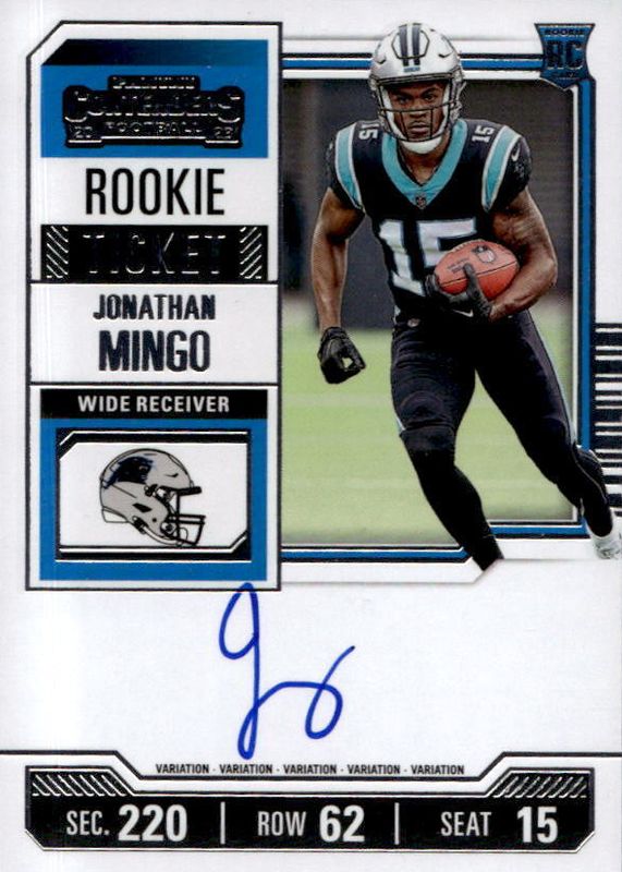 JONATHAN MINGO 2023 CONTENDERS ROOKIE TICKET VARIATION ROOKIE AUTO PANTHERS